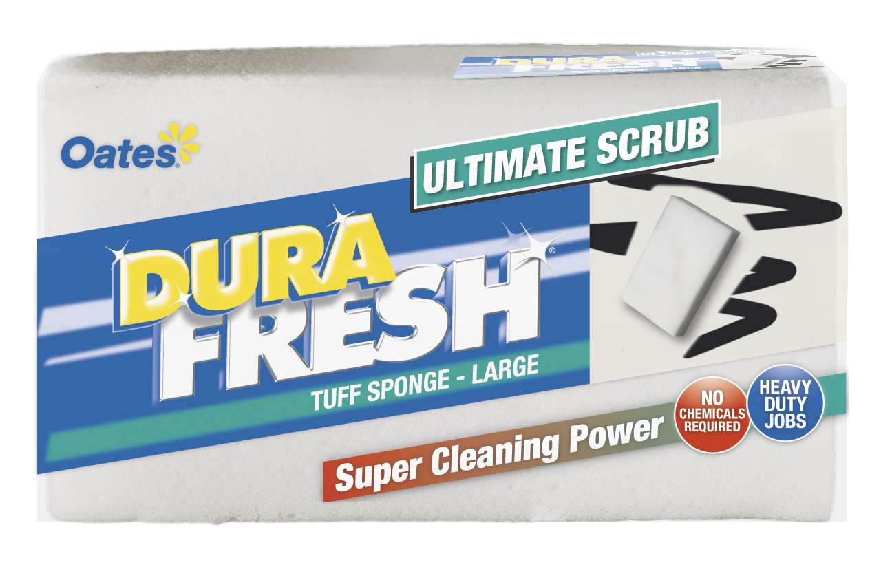 Oates range of Ultimate Scrub Durafresh Tuff Sponges provide you with Super Cleaning Power. These high performance cleaning sponges remove ink, crayons, scuff marks and texta off walls, hard floors, windows and multible solid surfaces. They also eliminate the need for chemical cleaning agents – simply wet the sponge, squeeze out the excess water and its ready to use.