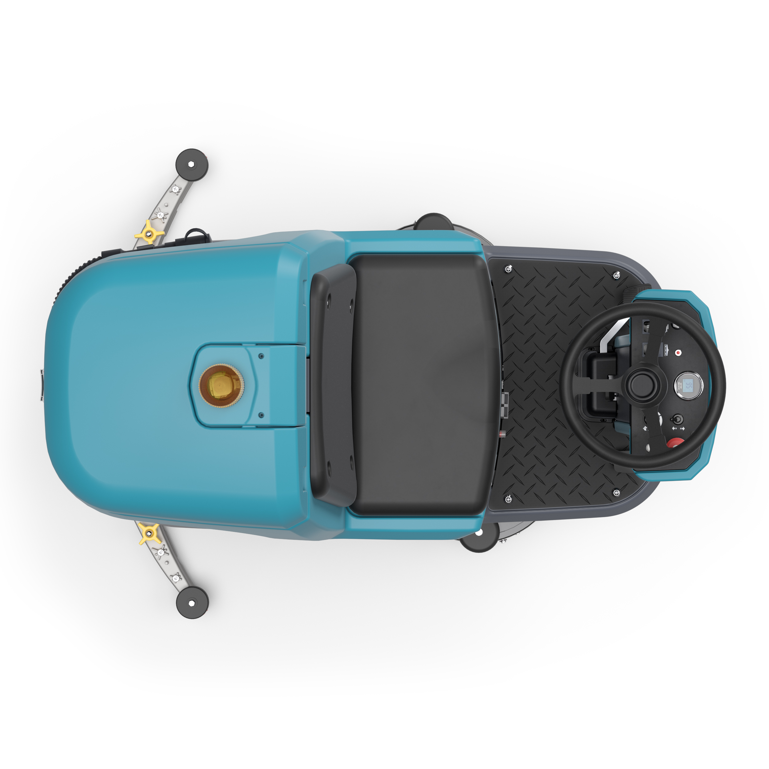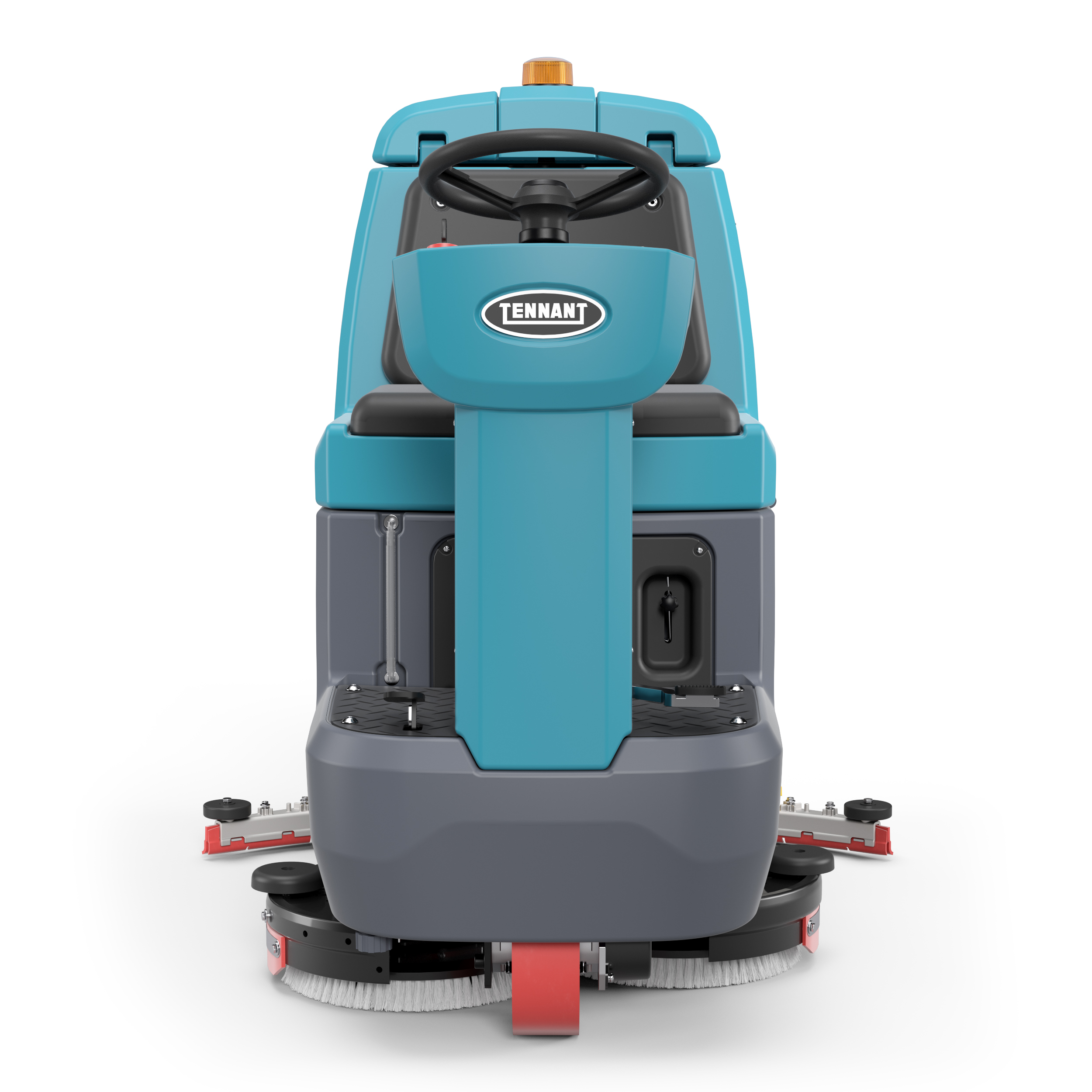- Compact and maneuverable design – Reach many areas of the facility and narrow spaces with the highly maneuverable scrubber with a 1m turning radius and front-mounted drive design.